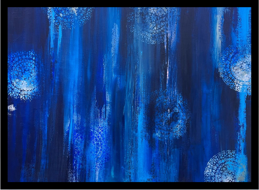 Sapphire Swirls is a textured abstract painting adorned in darker blues with captivating spiral patterns. The rich textures invite tactile exploration, adding depth and intrigue to the artwork. A visual symphony of shadows and spirals, this painting beckons a brief yet immersive encounter with the enigmatic allure of deep, textured blues.
