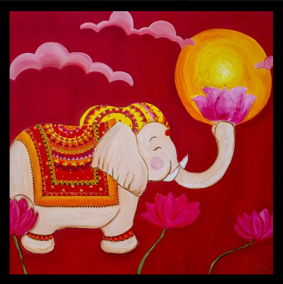 Baseerat is an illustrative representation of “Walking Towards The Divine Path”; to walk on the divine path of spirituality. The painting depicts a verse from the Holy Guru Granth Sahib “Hukum Razai Chalna Nanak Likhya Naal” which means to walk in accordance with hukam. The Divine resides in all, and therefore we must treat others as embodiments of the Divine.